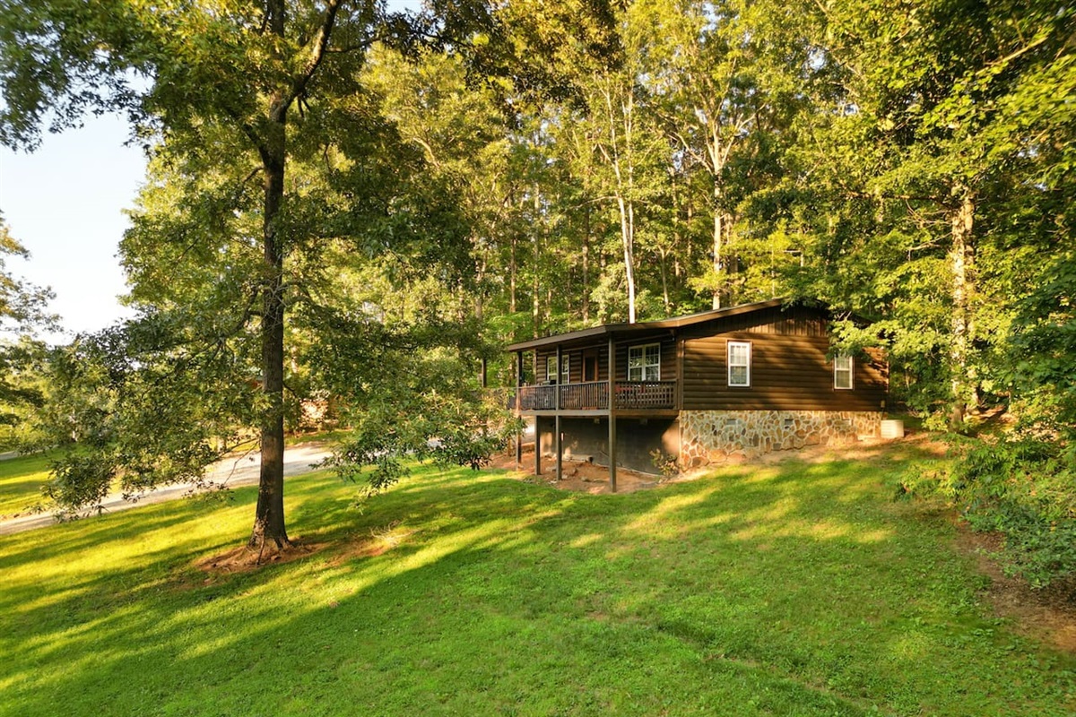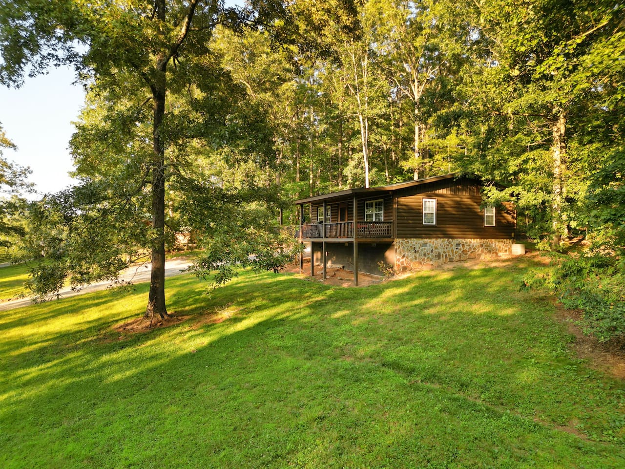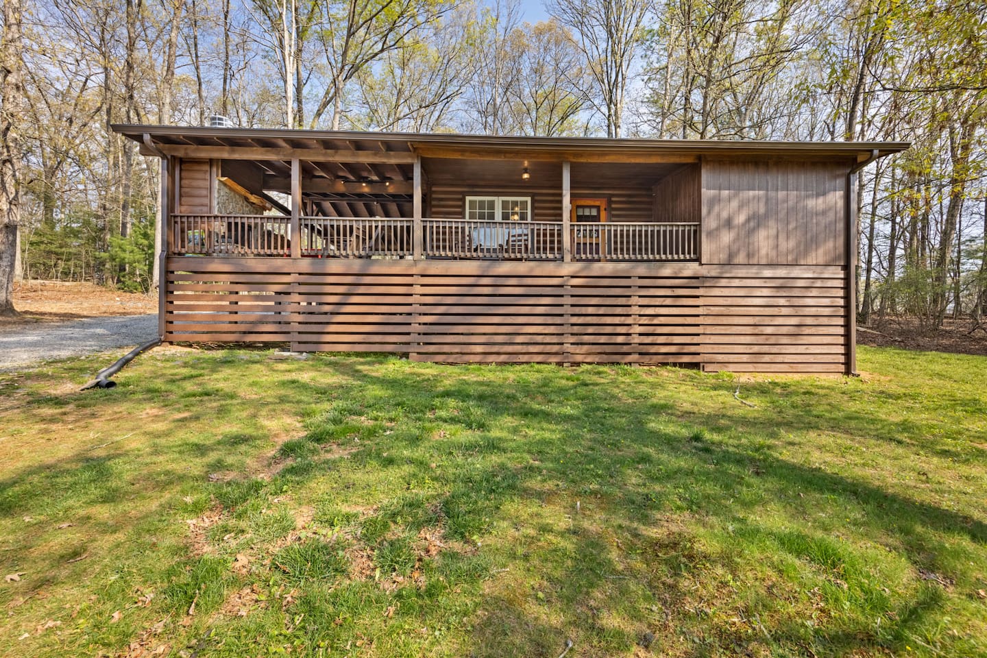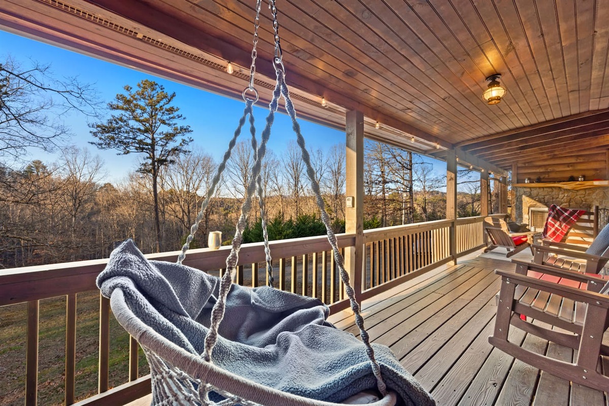 1 Bedroom • 2 Bathrooms 2 Baths • Sleeps 2Leave the noise of the city behind and find your peaceful mountain escape at 'A Stone's Throw.' This cozy cabin is centered around its incredible outdoor living space. The large, wraparound covered porch is your all-weather haven for relaxation, featuring rocking chairs, an outdoor dining area, and a stunning wood-burning fireplace. After a day of exploring, sink into the bubbling hot tub, perfectly situated on the covered porch for year-round enjoyment. The porch is gated and provides direct access to a fenced dog run, allowing pets and children to roam freely and safely.