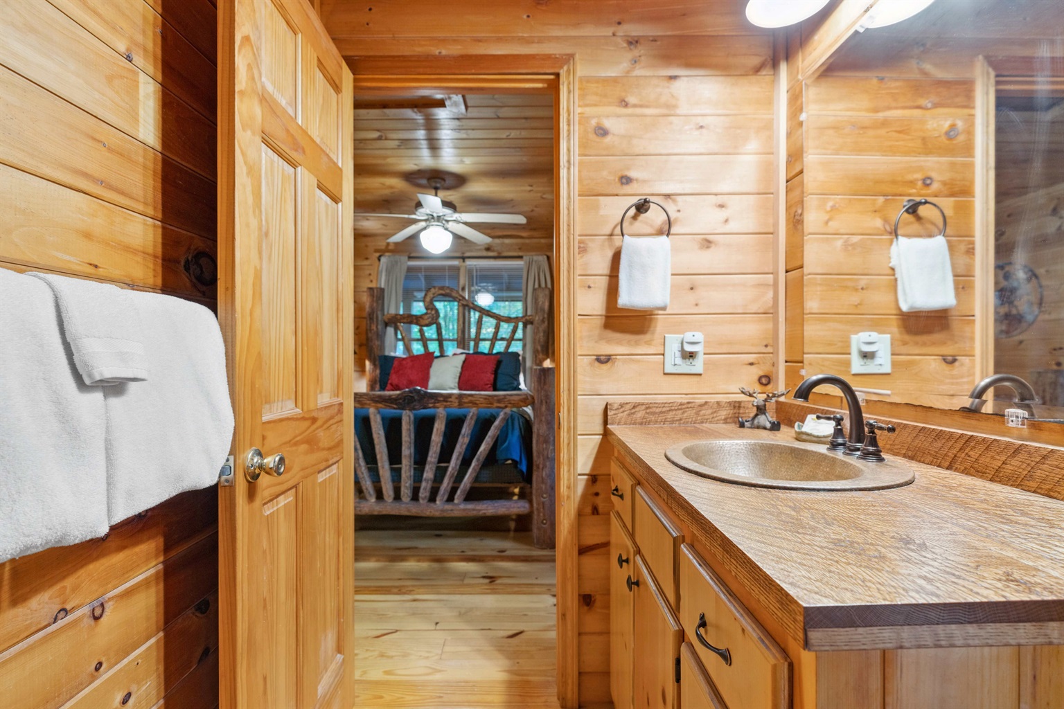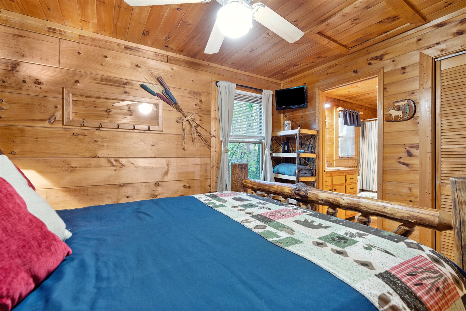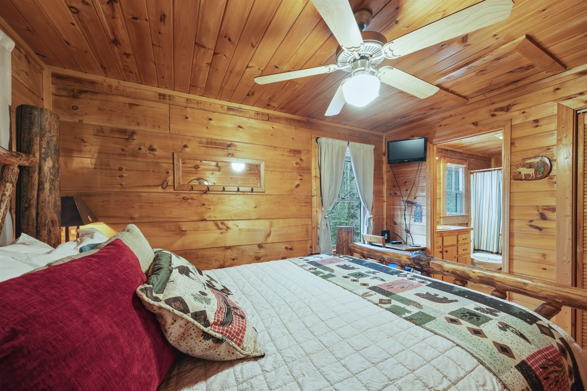 With two bedrooms and two full bathrooms, this cabin is perfect for a relaxing family, friends’, or couples’ retreat. Both bedrooms feature comfortable Queen beds and high-quality linen and pillows for a good night’s sleep.