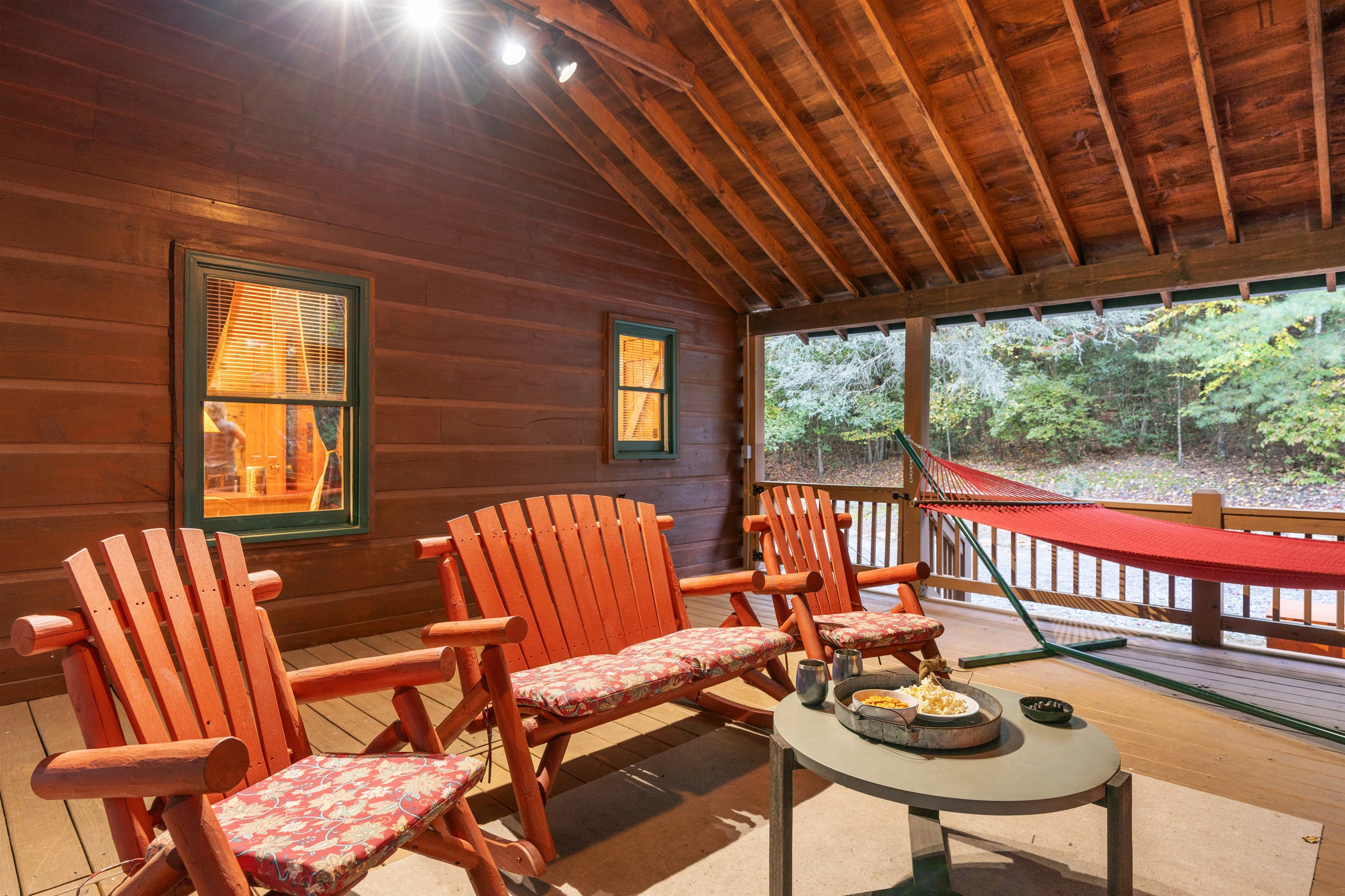“This cabin was so great for a girls weekend getaway!! The porch is amazing. There are little gates too, so little ones wouldn’t wander off. Pretty close to Main Street in blue ridge. Right around the corner from a vineyard. Plenty of parking (we had four cars no problem). My GPS was able to lead me straight to the cabin so no problems there. The roads are mostly paved so my civic had no problem getting to the cabin either. Would definitely stay again!!” - Megan