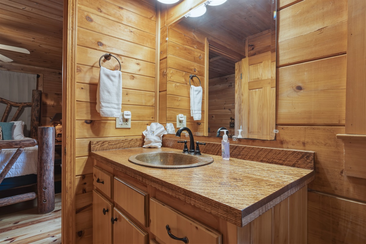 With two bedrooms and two full bathrooms, this cabin is perfect for a relaxing family, friends’, or couples’ retreat. Both bedrooms feature comfortable Queen beds and high-quality linen and pillows for a good night’s sleep.